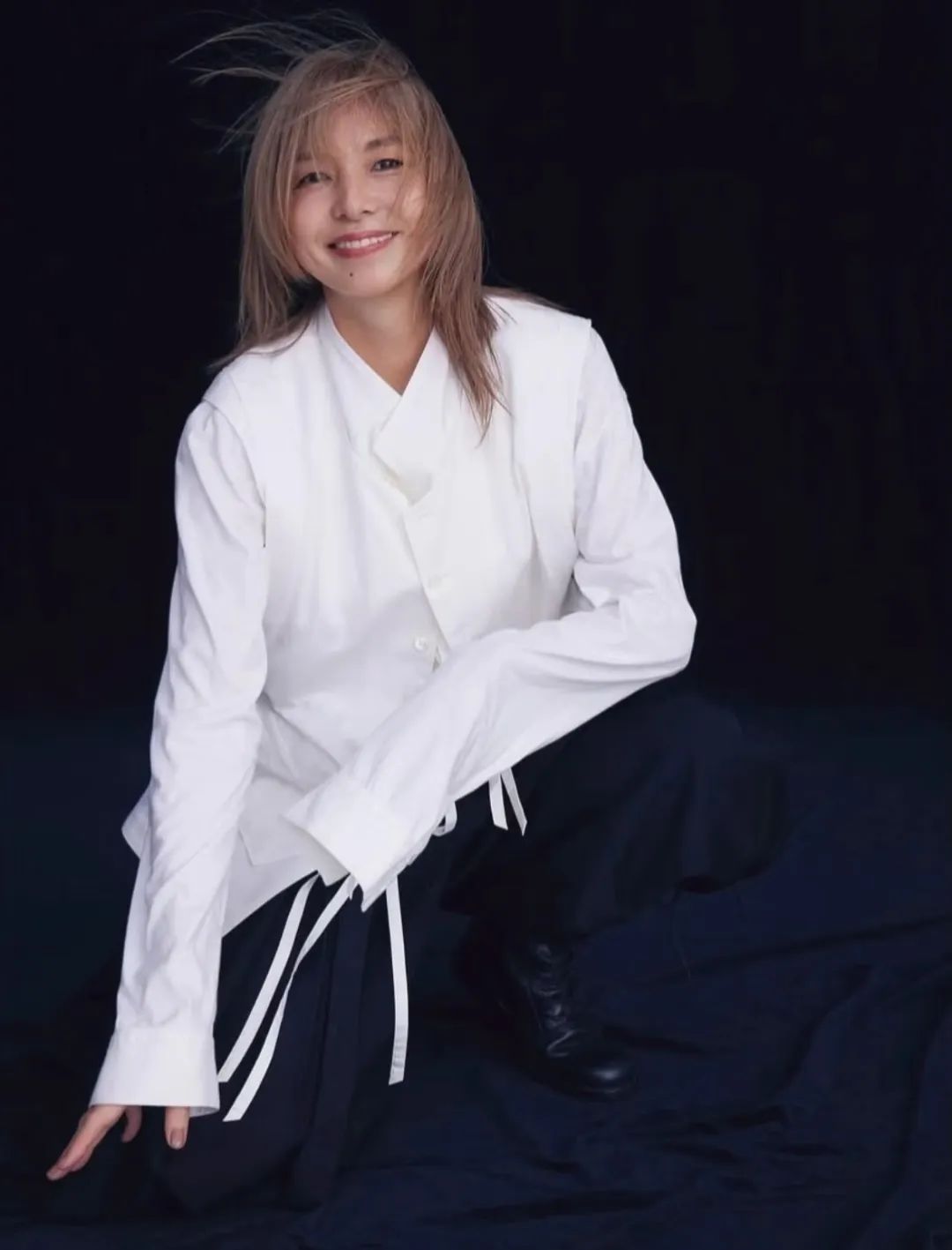 穿上白衬衫,随意得蹲在地上,扑面而来的少年感: