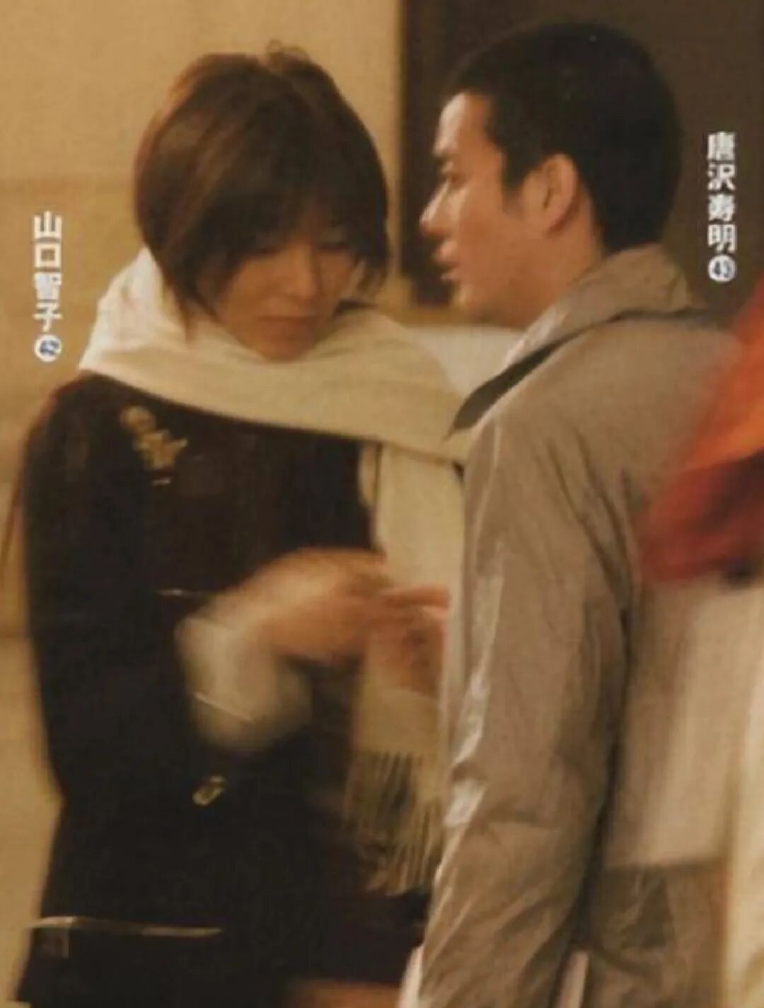 幸亏当时唐泽寿明在场,及时击退歹徒,保护了山口——就这样戏剧般地曝光了恋情。