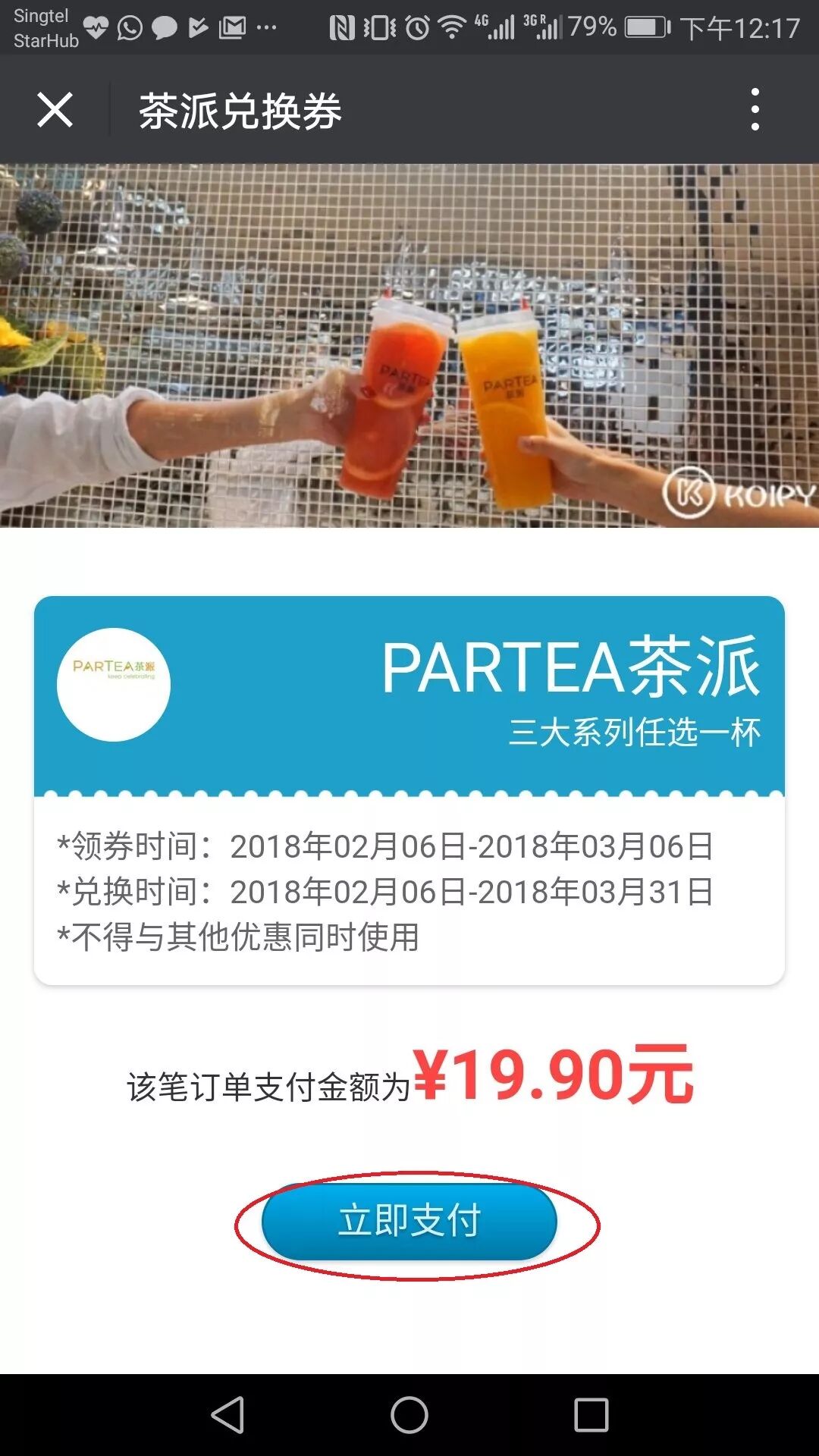 1.扫描以下二维码即可用¥19.9 (4新币)购买茶饮券,即可兑换三大系列任一杯茶饮(原价高达$6.9)