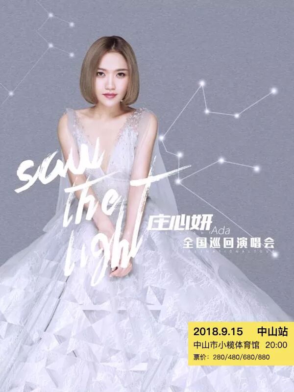 庄心妍saw the light全国巡回演唱会已经全力开跑,即将来到佛山!90后新生代女神庄心妍将空降全国多个城市展开巡演。由广东影众文化传媒全程主办,定于2018年5月19日佛山岭南明珠体育馆,情歌天后蓄势开唱,不同凡响。