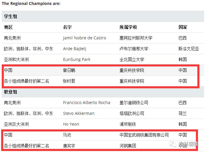 同时,也恭喜入围总决赛的另外三位中国小伙儿:重庆科技学院的曾召鹏、张时君和宝武集团的马欢。