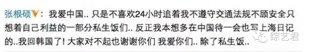 之前张根硕在深圳参加活动后被私生追车后,更是连发多条微博,一直在强调安全问题,甚至说(因为这种行为)可能以后也再不能来中国了
