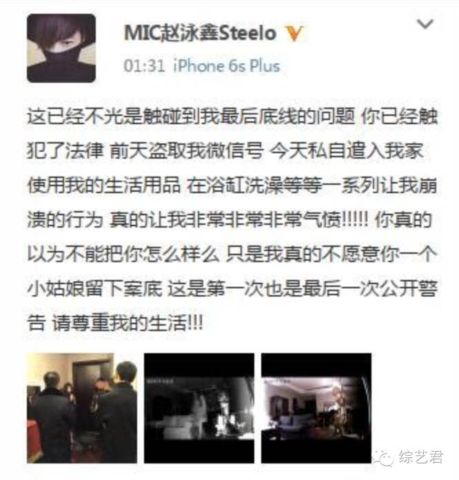 天朝有MIC男团的成员赵泳鑫被私生潜入家中非法入侵,警察赶到时私生竟然还正在浴缸里洗澡!而且她还还盗取了赵泳鑫的微信、并使用了其生活物品...