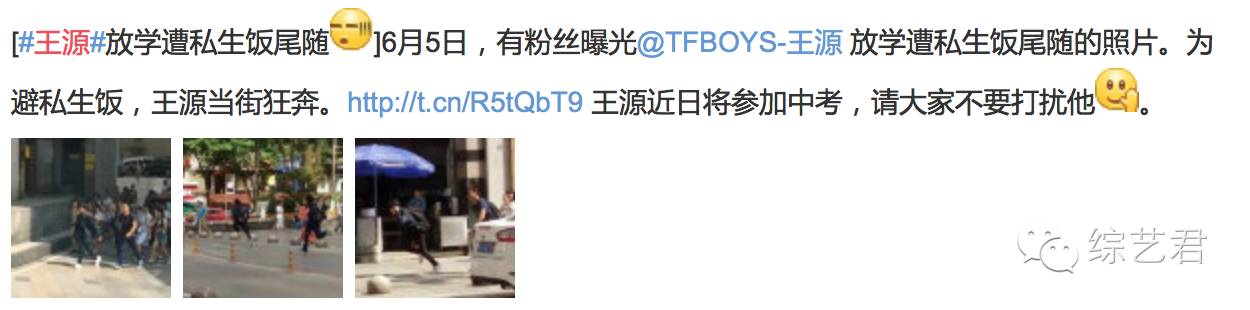 原来是在昨天王源放学后又遭私生饭尾随,当街狂奔