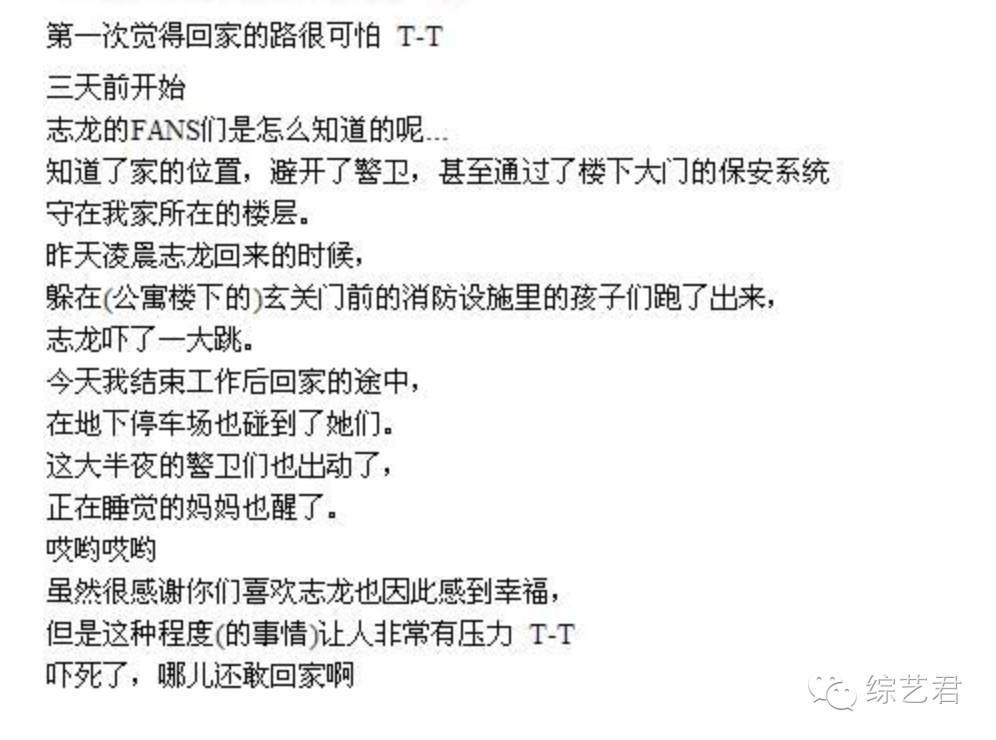 “虽然很感谢你们喜欢志龙也因此感到幸福,但是做到这种程度让人非常有压力,吓死了,哪儿还敢回家啊!”
