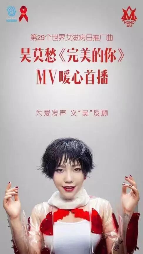 不仅对跨年晚会专一,在公益的道路上,MOMO也同样十分专一,保持每年发布一首公益歌曲,身体力行为爱发声,早在2014年和2015年,吴莫愁就相继发布了关爱艾滋感染者公益单曲《宠爱》和《接近无限温暖的你》,2016年世界艾滋病日当天,她又带着自己最新的公益单曲《完美的你》席卷而来。小编觉得公益这种事情,完全是一个人从心底自发的举动,而且能坚持不懈的做一件事情这么久,一定是一个心里很坚定的人。