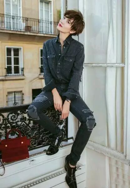 跟以往清汤寡水的校园女神风比较,江疏影这样的短发红唇更迷人有木有!!!