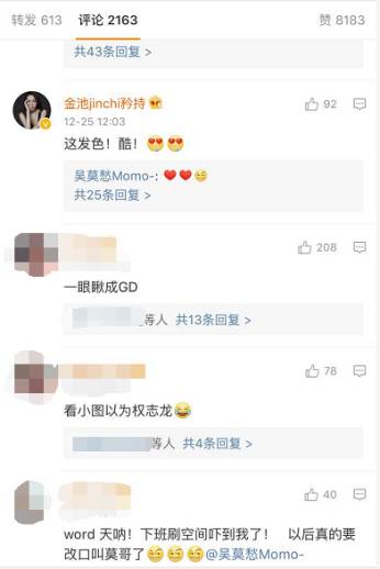粉色短发照片一经发出,网友纷纷大呼“好像GD!好帅!弯了!”不是我说,你们都稍微矜持一丢丢啊!来来来,我把你们用舌头prprpr舔屏打出来的字发出来你们看看!谁的评论谁来认领。