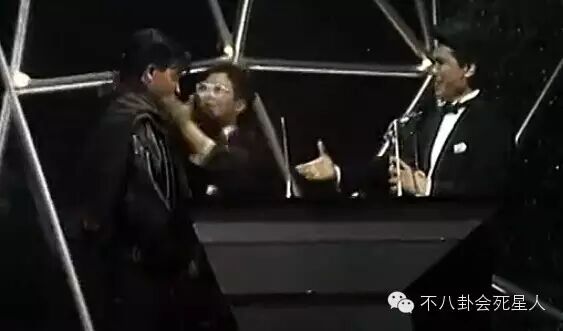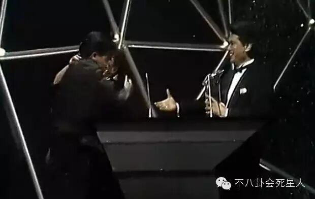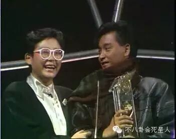1984年俞琤给张国荣颁奖,这是张国荣第一次得劲歌金曲奖,此时的张国荣还是小鲜肉啊一脸青涩带着激动兴奋的表情上台,一上台就被俞琤捧着脸亲了一口!