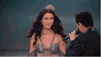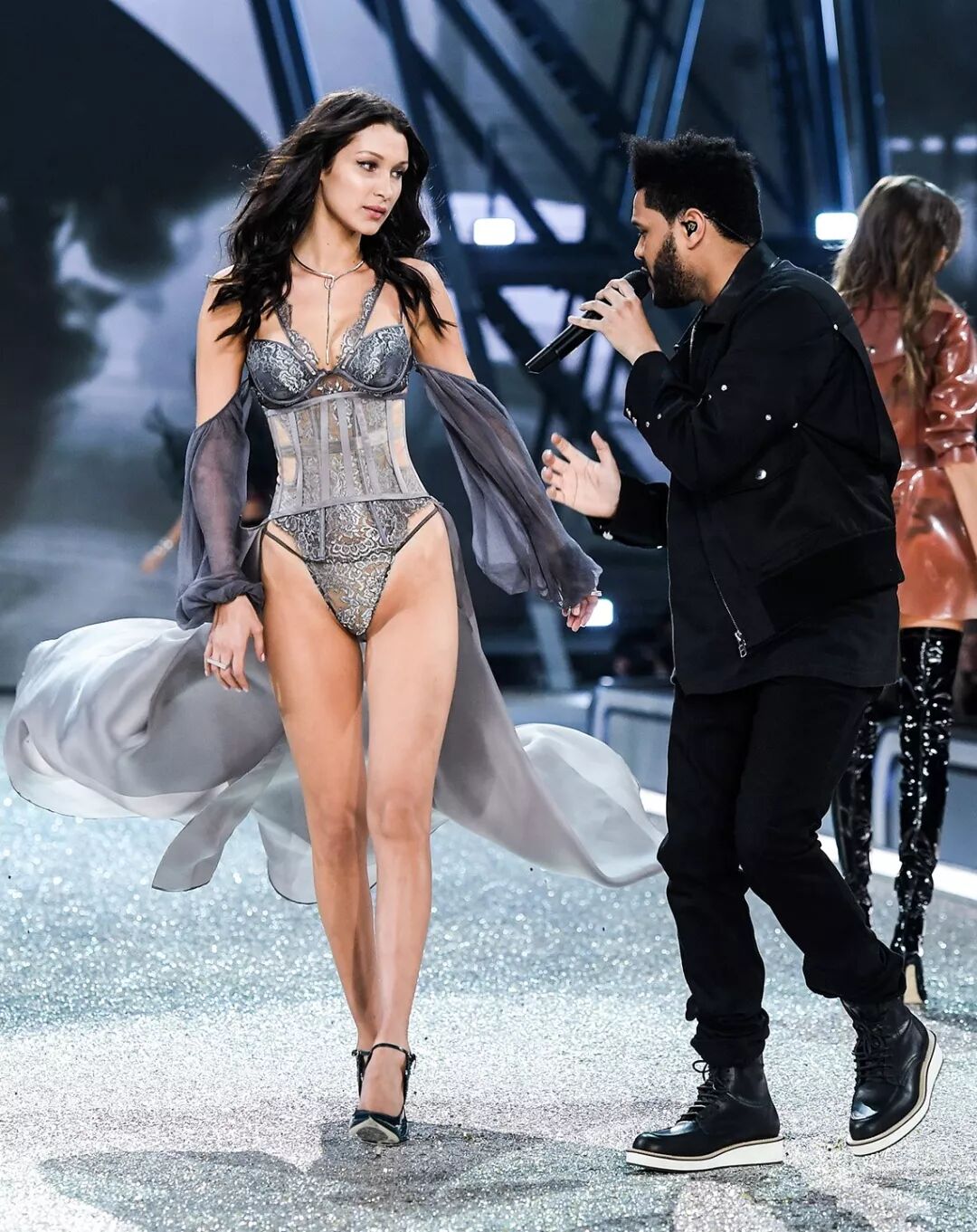 ▲Bella真的不是一个没有故事的女同学,不管是公事还是私事。陪她第一次登上维密大秀的还有表演嘉宾The Weeknd,他是Bella的前任,这是