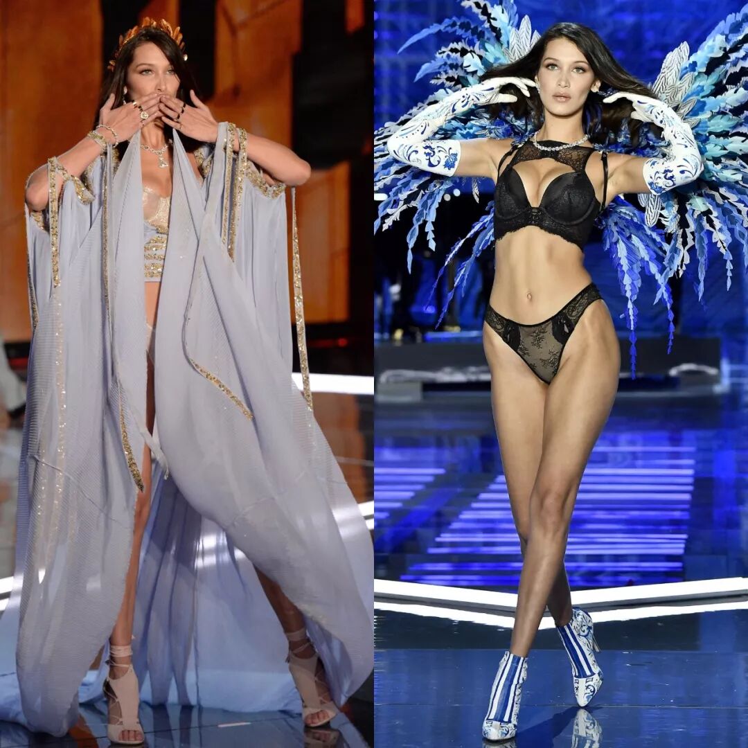▲北京时间今天早上刚刚举办的2018年维密大秀上,Bella Hadid以两个look惊艳亮相。