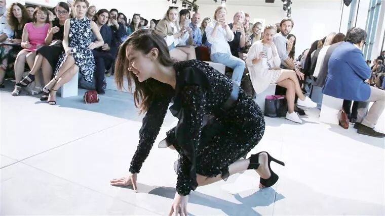 ▲说到Bella的秀场故事还不得不提在纽约时装周Michael Kors 2017ss秀场上的“处女摔”。