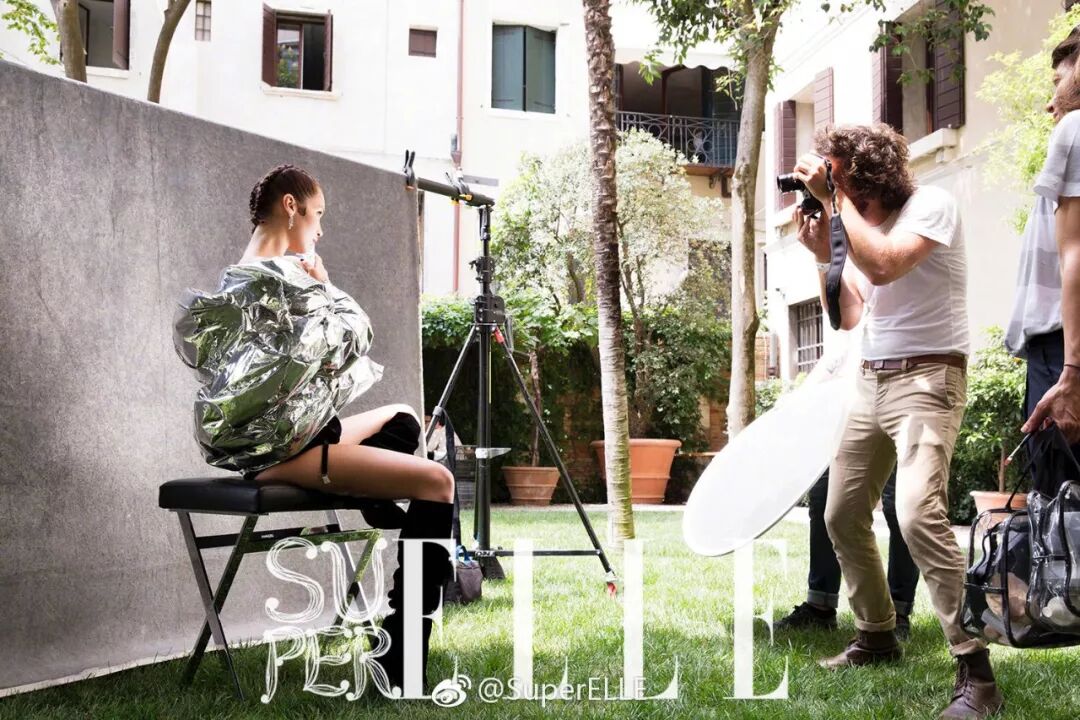 ▲除了溢出屏幕的超模气场,在现场拍摄花絮里,我们还看到了Bella难得一见的笑。