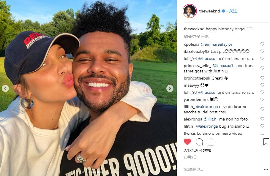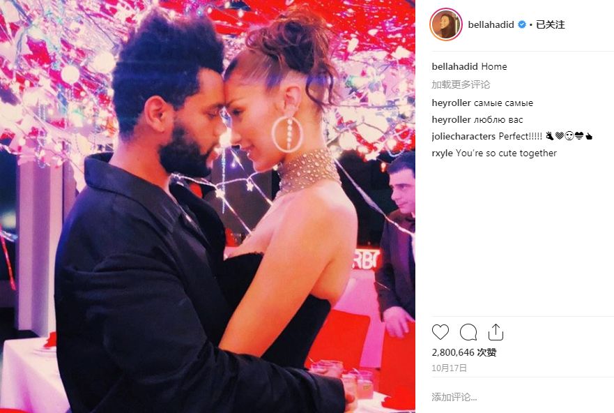 ▲虽然Bella方是首次社交媒体公开复合,但是在The Weeknd的ins上,两人就已然是甜蜜情人了。