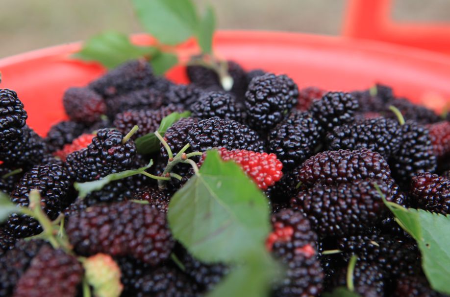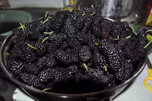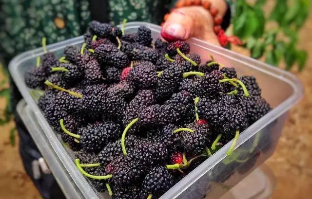 红得发紫、紫得发黑的桑果……