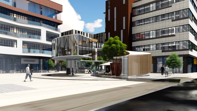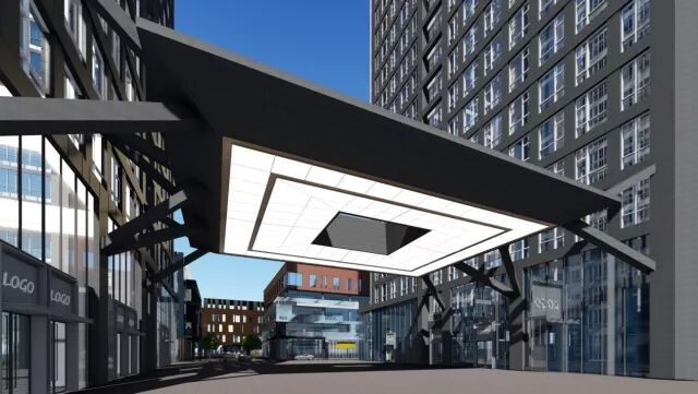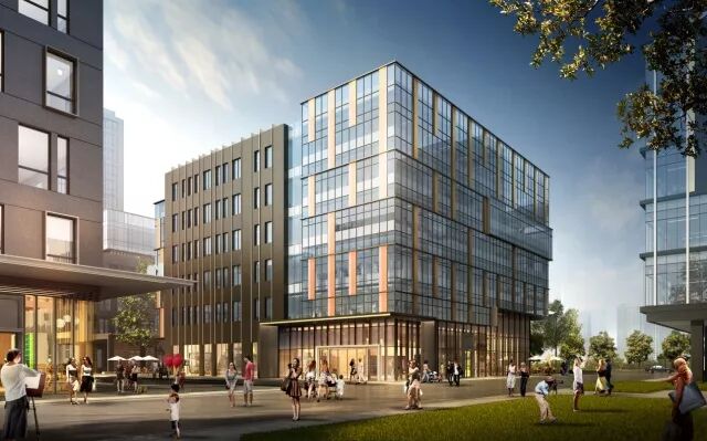 突破一般园区设计封闭内向的状态,通过城市道路的引入,打开办公园区对外沟通的节点,将整个园区向城市开放,同时为园区带来额外的机遇。功能上,商业、酒店、办公等各功能的混合,令街区成为一个24小时具有持续活力的区域。
