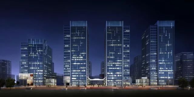 沿徽州大道是一期高层的对外形象展示面,建筑立面俊朗、挺拔,运用独特的铝板造型,勾勒建筑轮廓,树立起金融港的初容。