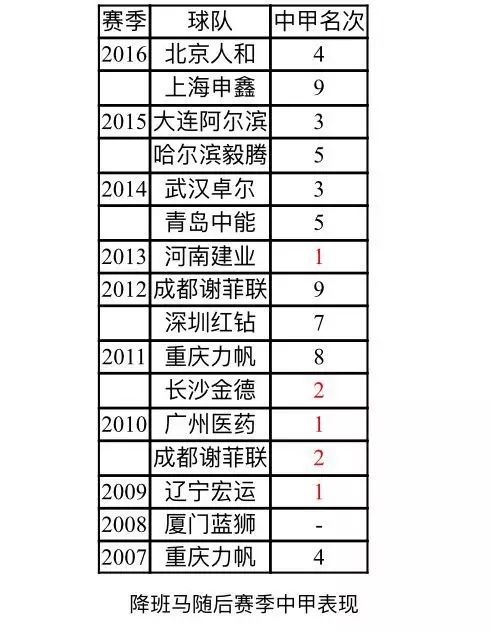2017赛季的中甲异常激烈,两支降班马在人员流失如此严重的情况下想要成功冲超,难度可想而知。除此之外深圳、卓尔等队投入巨大,加之此前降级的人和,常年在冲超集团徘徊的大连一方,永昌和绿城想要重返中超几乎没有可能,自2014赛季开始已经连续三个赛季降班马未能突围,依照现在的形势,该规律将继续延续下去。