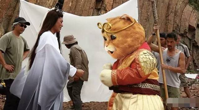 他在片场玩得不亦乐乎,一会扮作害羞少女,一会扮作豪爽女土匪。