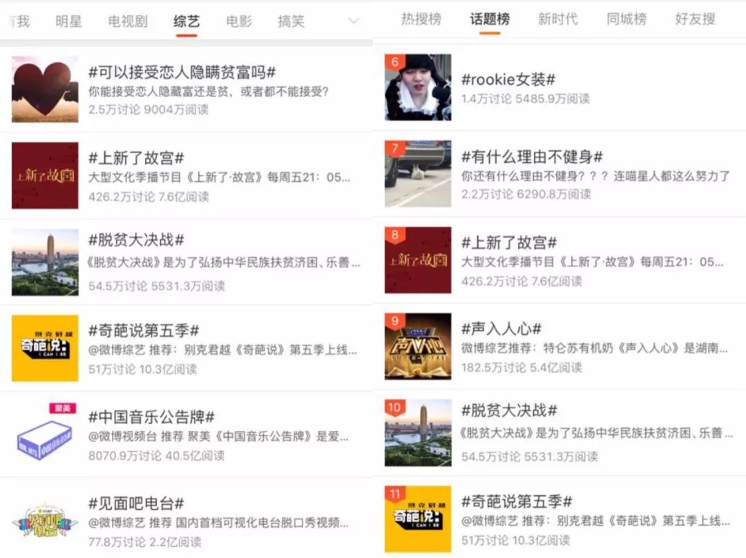 人民网、光明网、腾讯、新浪、网易、搜狐、今日头条、凤凰、百度等数百家媒体进行转载,新浪微博、微信公众号等大量自媒体号广泛传播。微博端#脱贫大决战#话题于11月24日达到话题榜第10位 综艺榜第3位,话题阅读量达5531.3万。