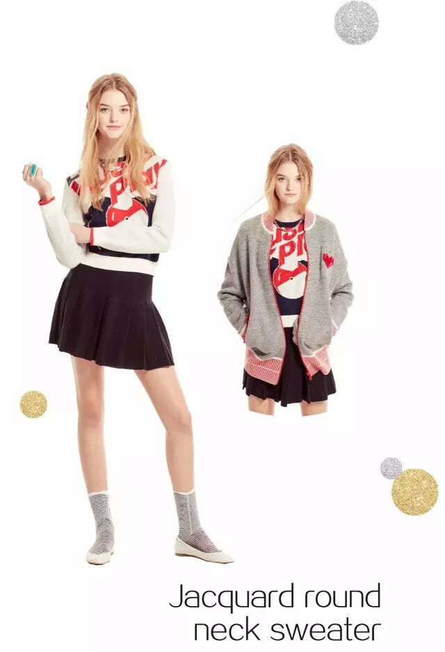 个性十足的复古插画印花夺人眼球,独特的三重提花混纺面料让这件基础圆领针织更加值得入手,搭配百褶短裙与拉链外套便足够青春俏丽。