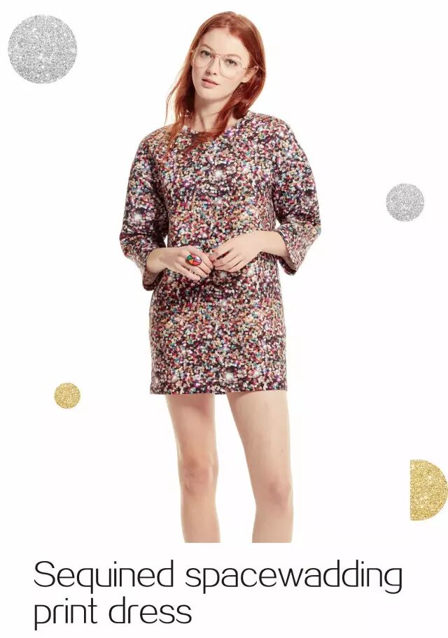 喜爱彩色亮片的复古与高调却畏惧打理的麻烦,一件高还原亮片的太空棉印花单品绝对是你不容错过选择!一字领中袖连身短裙不仅单穿合适,更是搭配高手们不可多得的完美内搭单品!