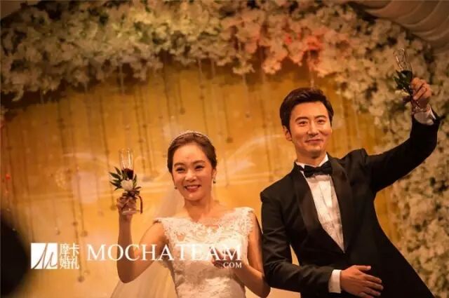 蔡琳&高梓淇的婚礼,俩人在舞台上敬酒