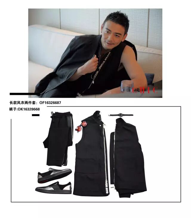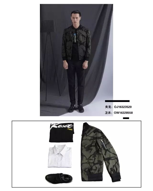两件套风衣,夹克可单独穿,配上背心风衣又是另外一种造型。面料以挺阔的材质为首选,设计师在袖子及里襟用白色织带作了点缀设计章显出时尚运动感。