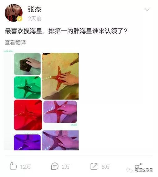 前几天,张杰晒出一张照片,照片中全都是他拍的海星,他还配文说不知不觉就拍了这么多海星,不说这句话还好,一说cp粉们都炸锅了,都知道吴昕和徐海乔在《我家那闺女》后就有了很多cp粉,而cp粉给他们取的名字正是“海星cp”,是徐海乔和吴昕名字的谐音,难怪看到张杰晒海星的照片会这么开心。