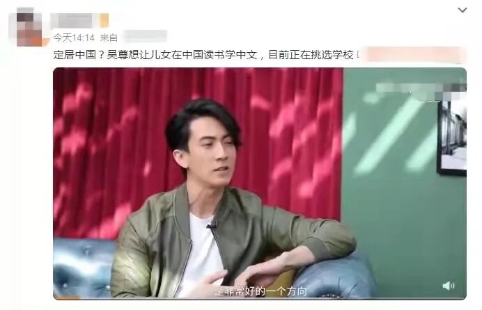 而在2022年1月,吴尊在采访中透露自己想让孩子来中国上学,并且已经在帮孩子看学校了,希望两个孩子能够学习中文、感受中国文化,定居内地一直在吴尊的计划之中。
