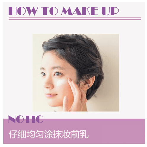 STEP 2:在妆前乳还未贴合肌肤时就立刻涂抹粉底,是导致脱妆的原因。可以手掌抚摸面部确认是否已经渗透。