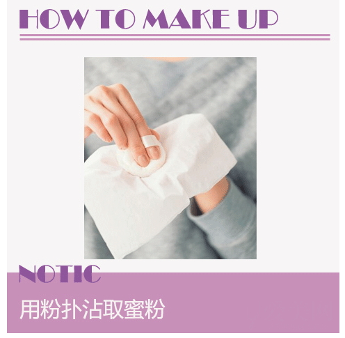 STEP 5:为能均匀涂抹面部整体,用粉扑沾取蜜粉C后,先在纸巾上擦去多余粉末。
