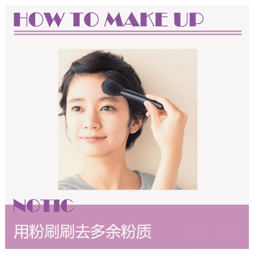 STEP 7:涂抹蜜粉后用大号粉刷轻轻刷去面部上残余的粉末。有效提升肌肤光泽感