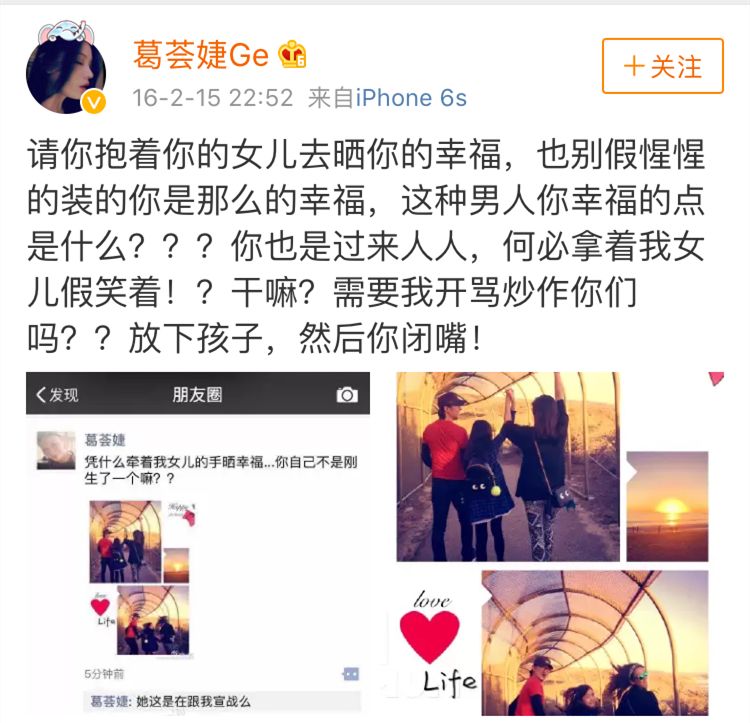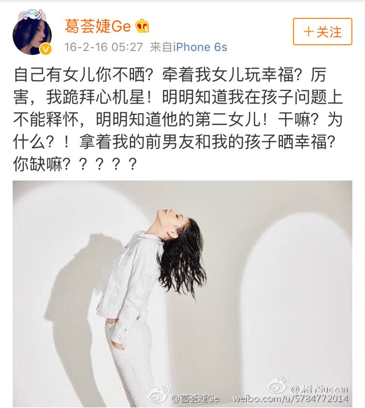 去年情人节,章子怡晒了一张照片,是一家人外出游玩的合影,里面有章子怡汪峰,和葛荟婕的女儿熙熙。可以看出熙熙其实笑的很开心,但是葛荟婕却炸了。