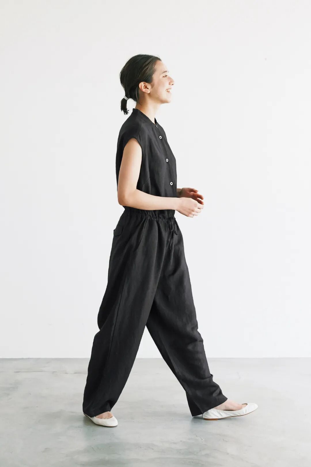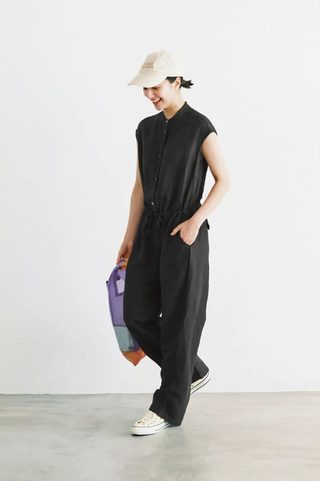 黑色连体裤潇洒帅气,搭配棒球帽更增添活泼的味道。