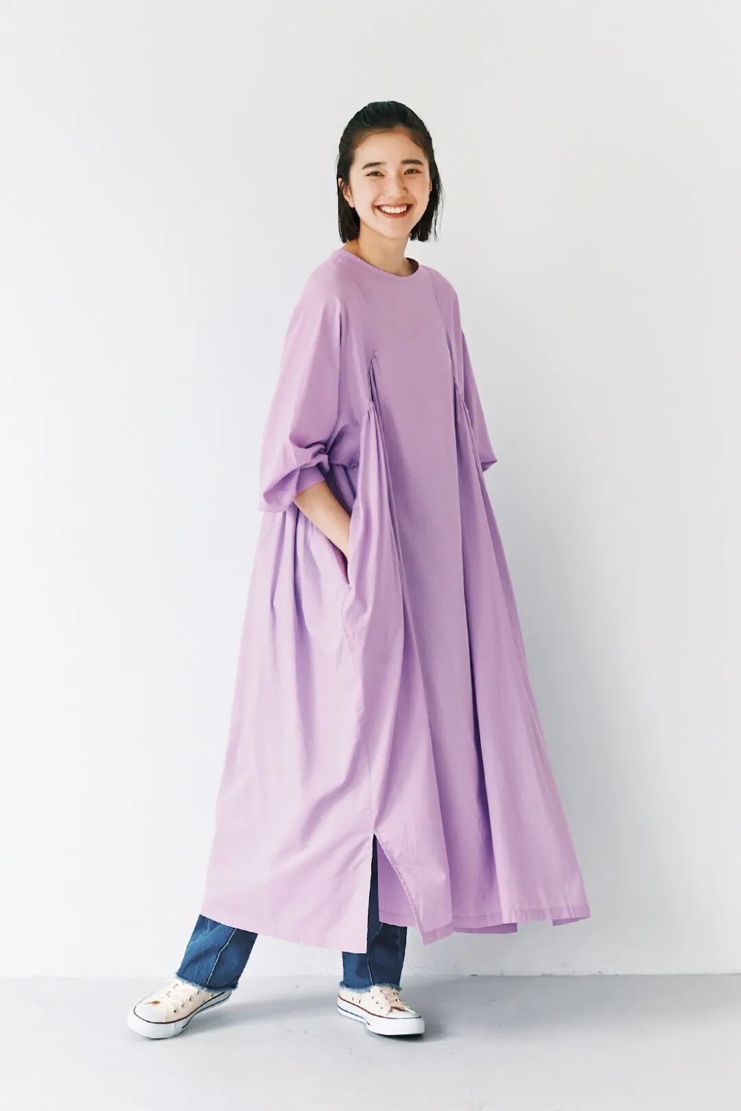 宽松的紫色连衣裙,穿出无拘无束的随性洒脱,亮色系又能显得心情明媚愉悦。