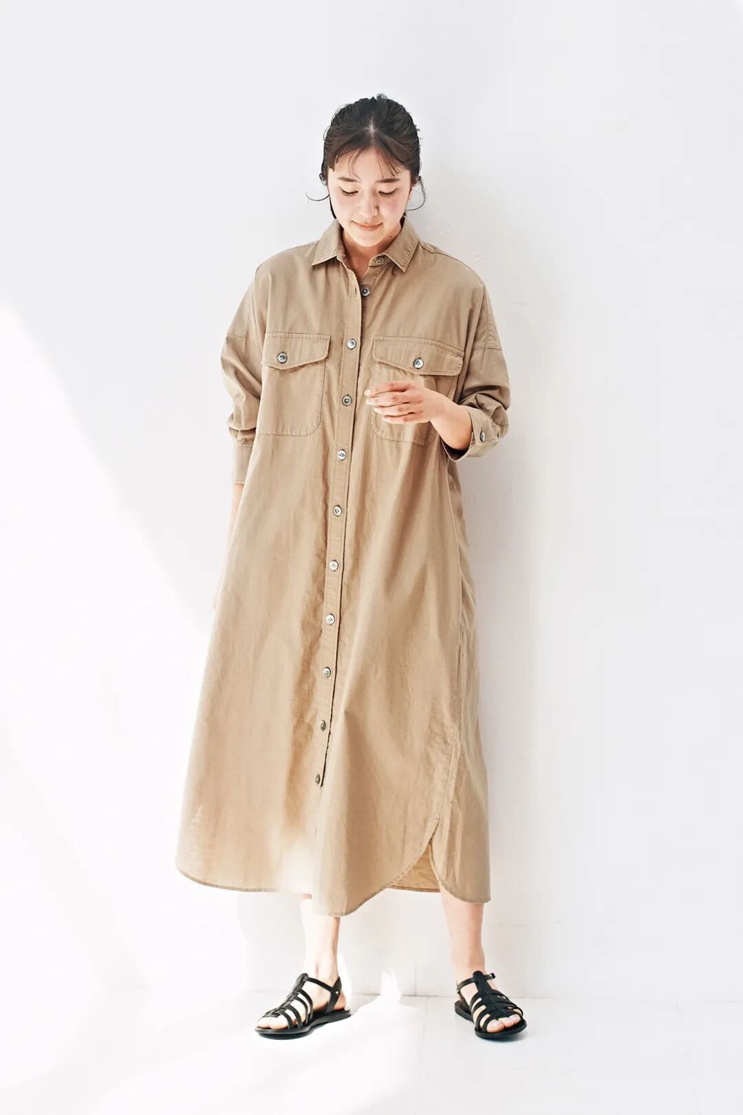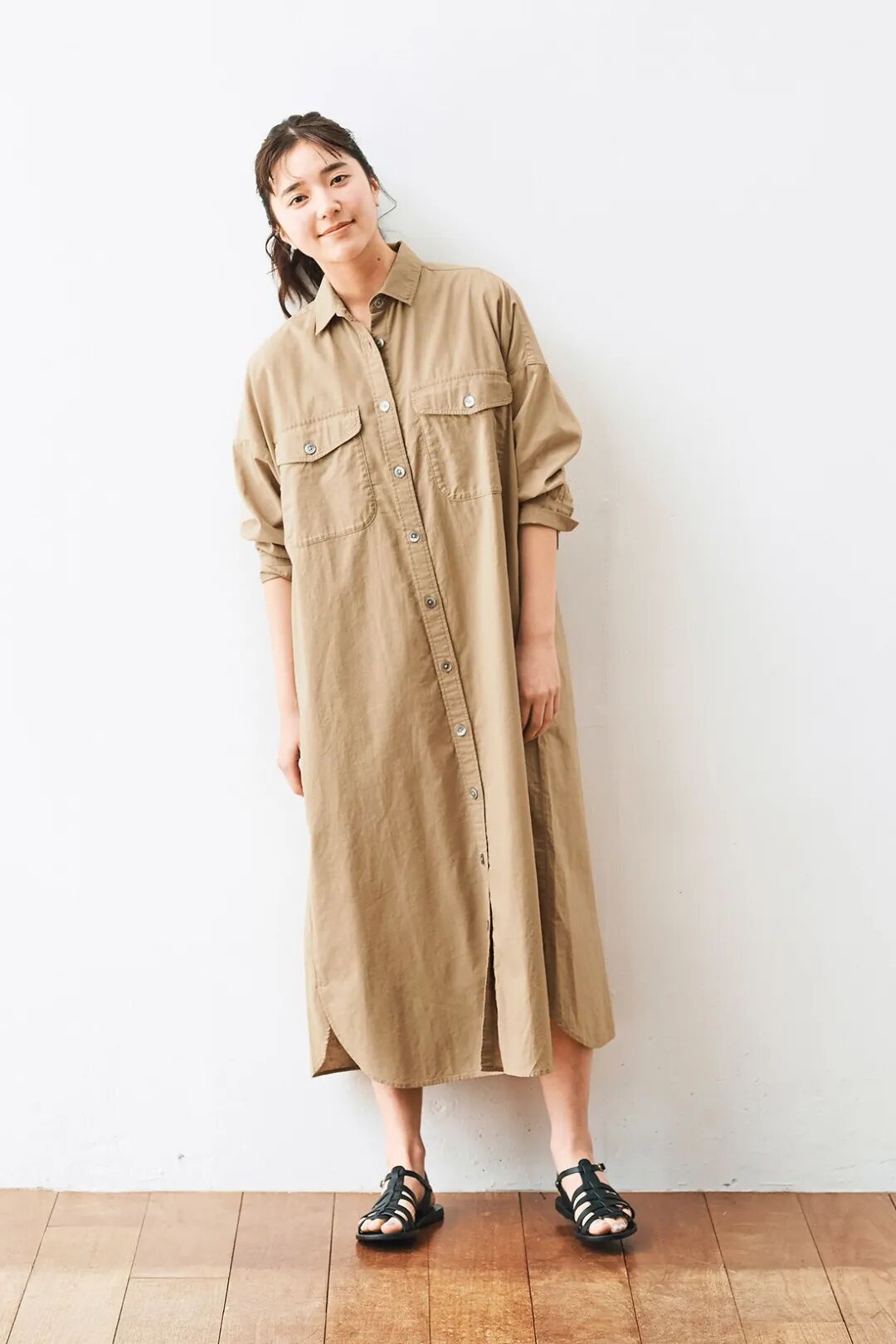 工装风的卡其色衬衫裙阳光且帅气,穿出中性魅力。