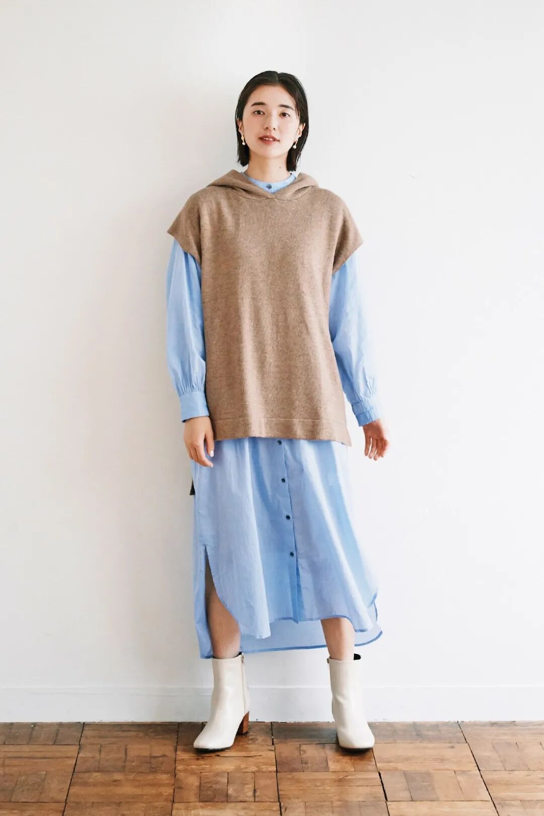 或者加一件针织背心也是不错的御寒选择,帽衫的混搭带来无穷新意。