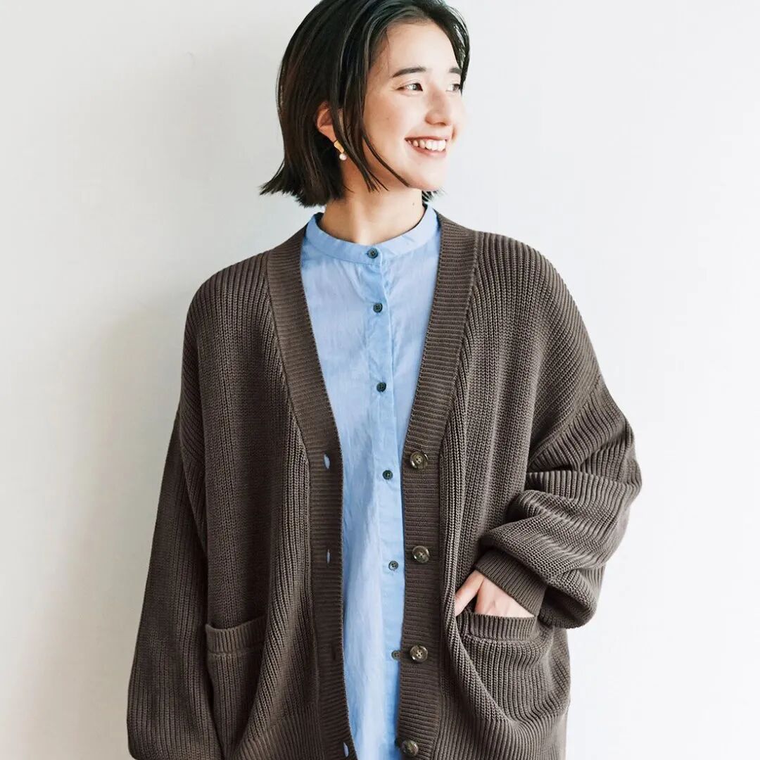 冷的时候披上深色针织衫,多了一份文人的含蓄与风雅。