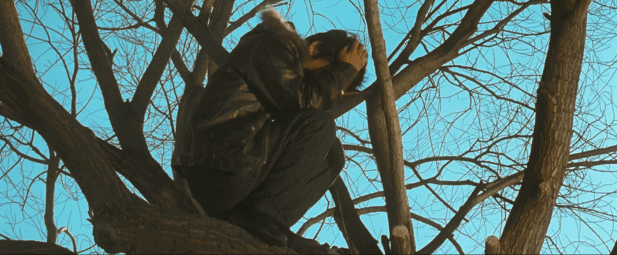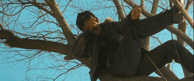 美好的幻想终结在冰冷的现实里。下一个镜头,树靠在大树上笑出了声,如同白日梦太过美好把人笑醒一样。