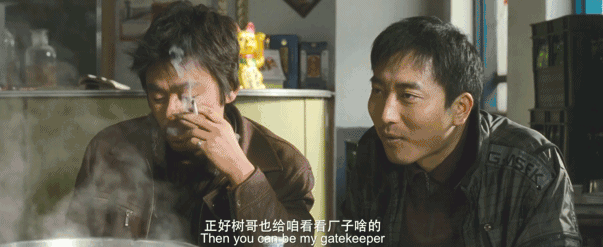 这是树(王宝强 饰)的一个习惯性动作,这个动作是对内心怯懦自卑的浮夸掩饰,类似的还有很多: