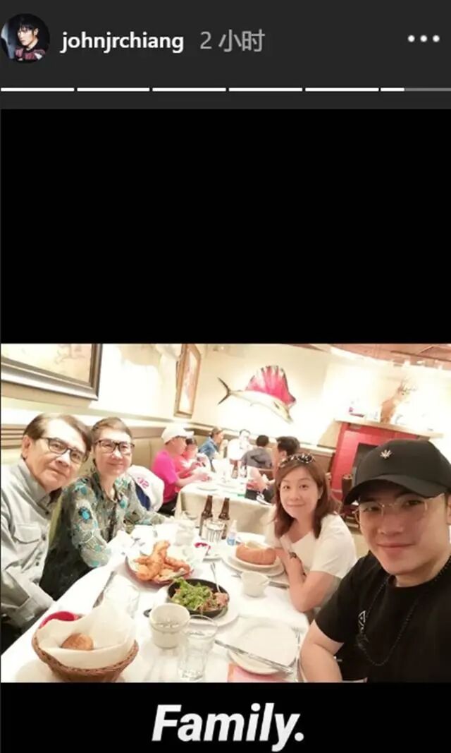 4月30日,姜大卫小儿子姜卓文在个人社交账号上晒出一张一家四口聚餐的照片,并配文:一家人。