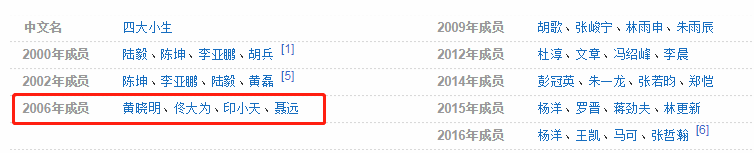 06年,黄晓明、佟大为、印小天、聂远被评为娱乐圈“四大小生”。