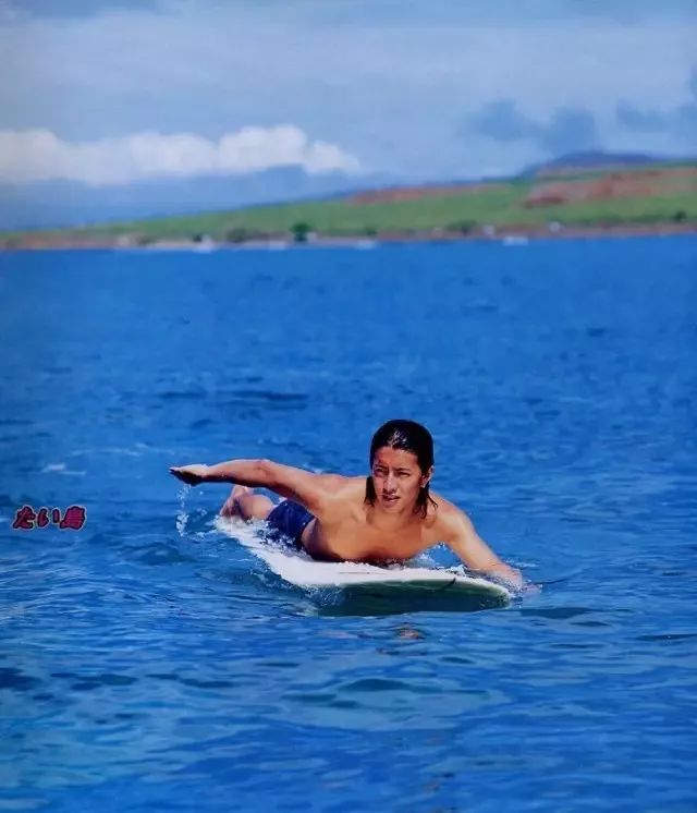 工藤静香每年都会定期陪木村冲浪。哪怕人到中年,容貌发生了变化,身材却依旧如年轻时能打。