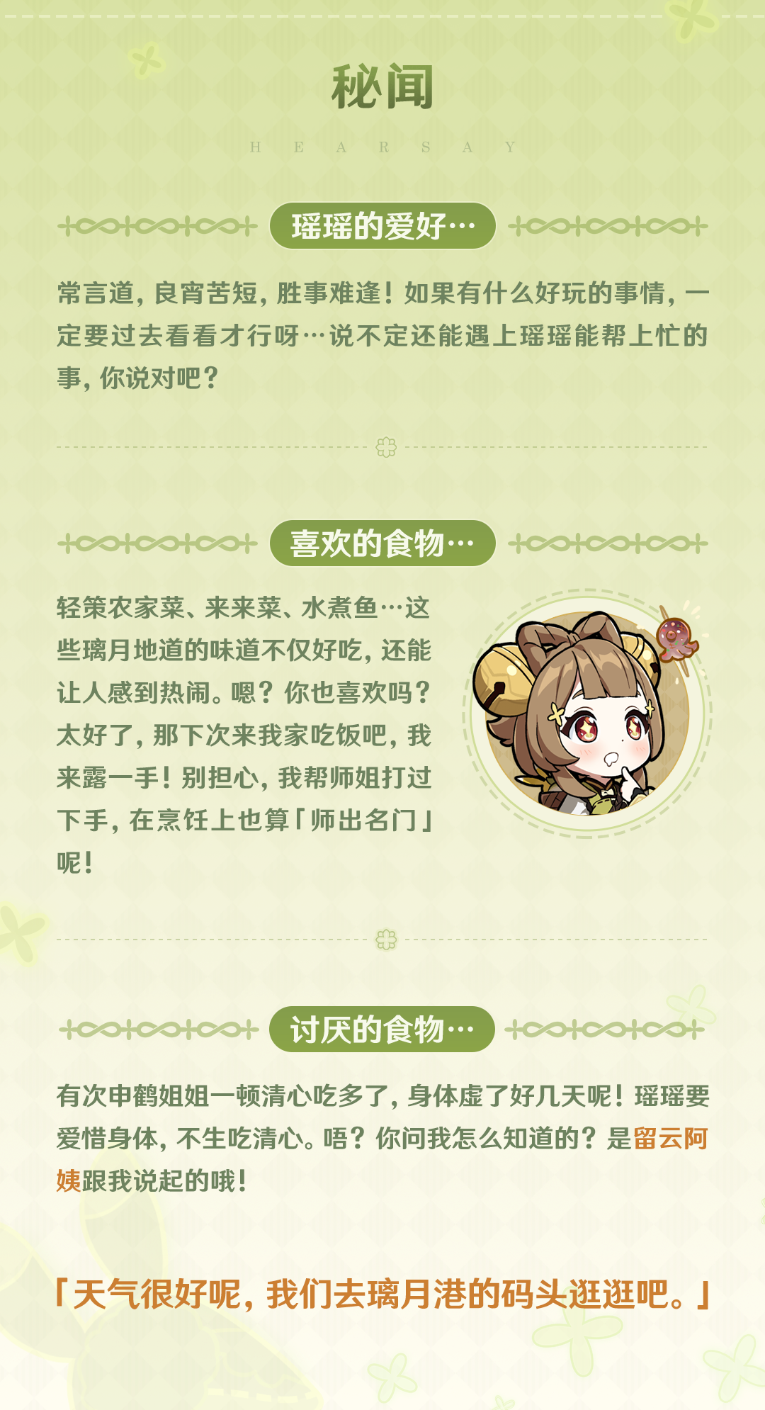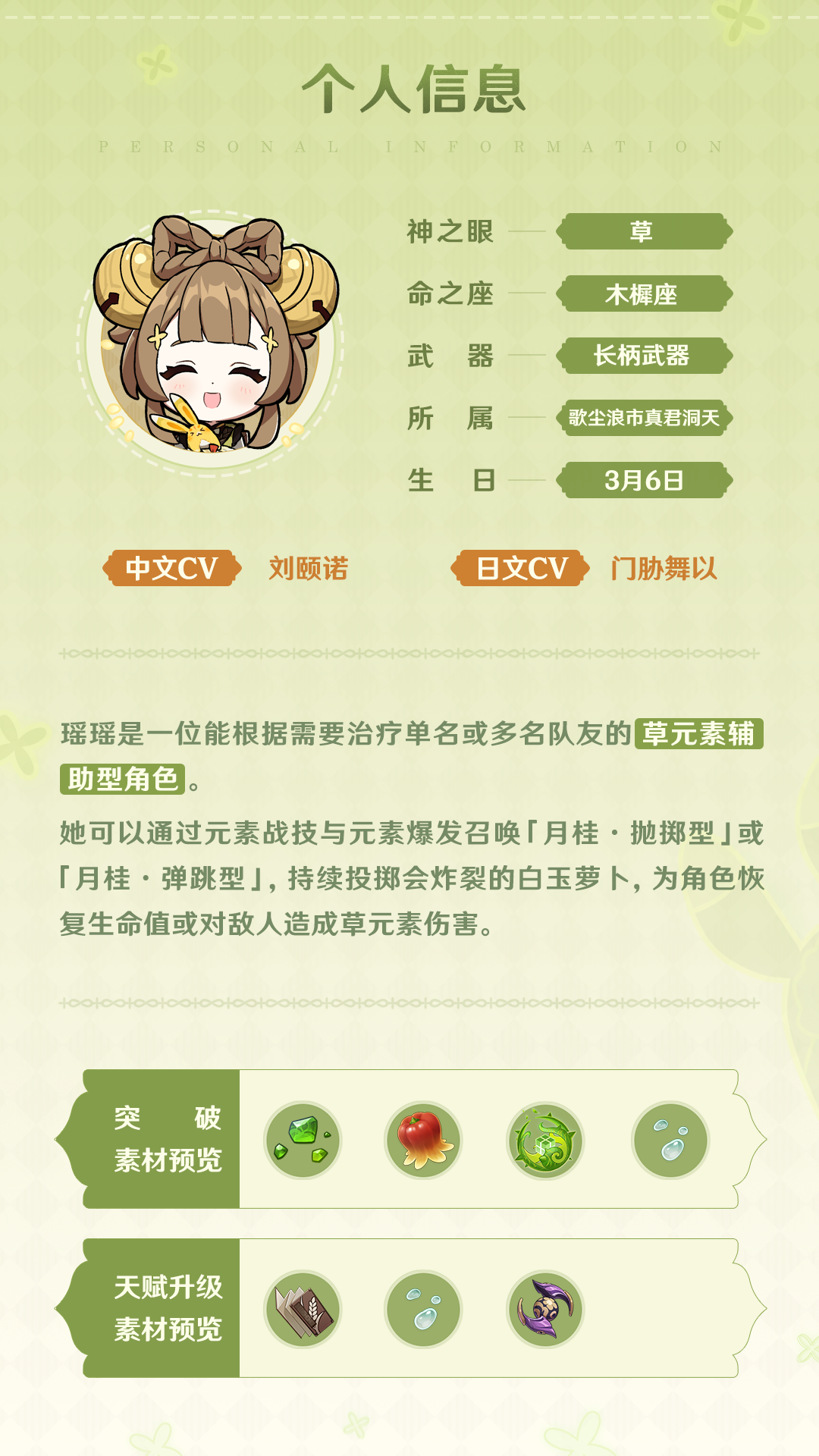 旅行者们好呀!今天为大家介绍的角色是瑶瑶。