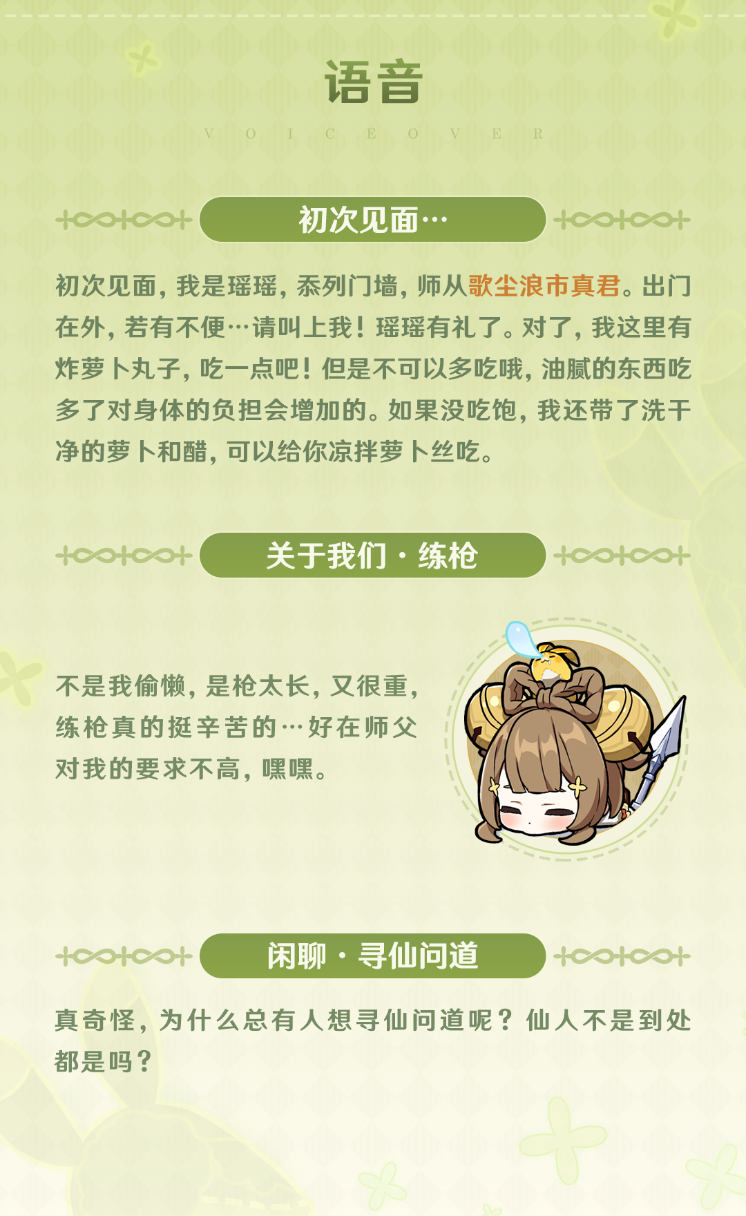 难怪师姐香菱时常犯嘀咕:「怎么有种被瑶瑶当成小孩子照顾的感觉…到底谁是谁的师姐呀?」
