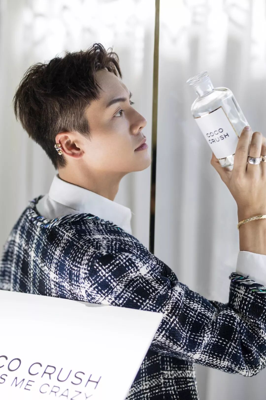 谁说首饰只是女性专属,陈伟霆就把COCO CRUSH演绎出了另一种风格,饱饱甚至把戒指上的经典菱格纹搬到了发型上(想知道他哪里剪的),是不是有够沉迷?