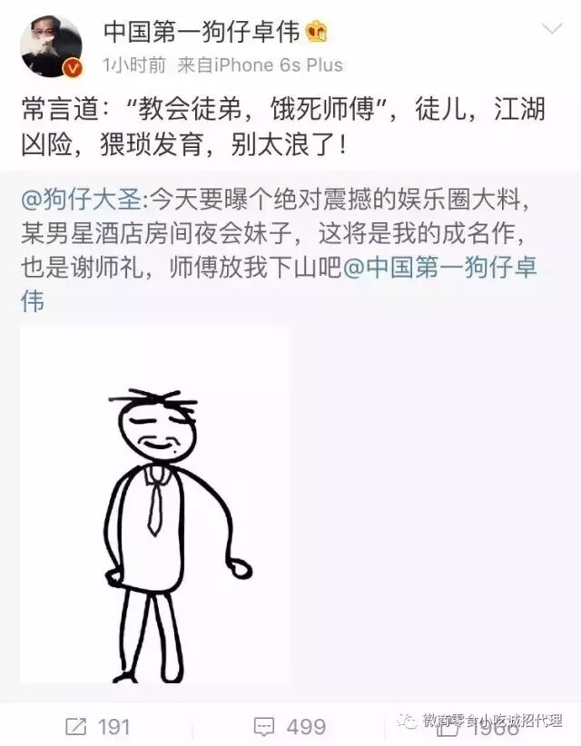 中国第一狗仔卓伟不仅自己搞事,还带着徒弟一起搞事!这不,徒弟狗仔大圣要出山,预告自己要曝一个大料。