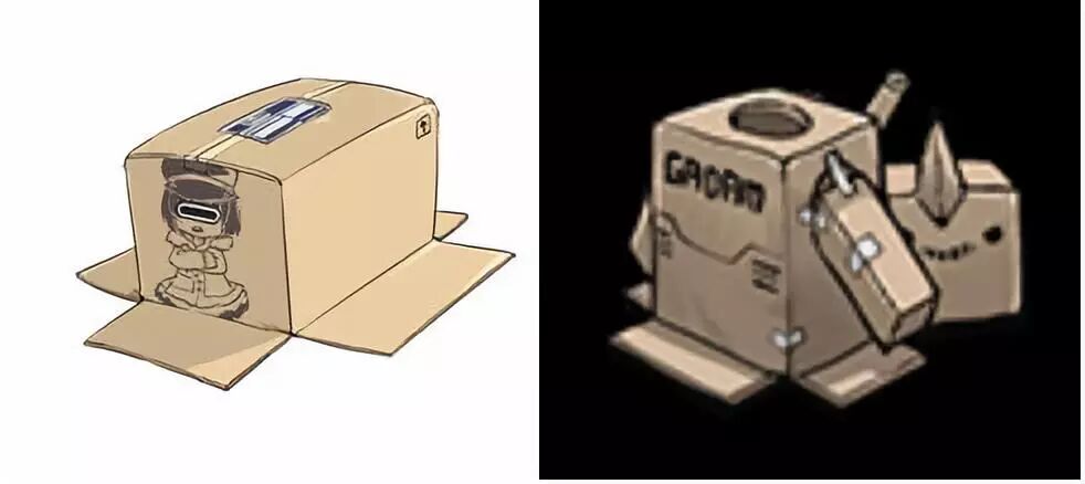 虽说描述里说是用这个捏他《潜龙〇影》的快递箱改造的纸箱铠甲,但外观上明显不一样(还多出了不少部件)