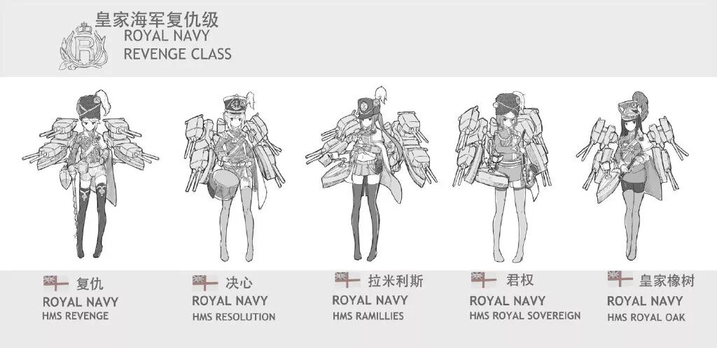 实际上她们早在15K放出的草稿中登场,因种种原因,目前仅有皇家橡树作为可用舰娘实装。
